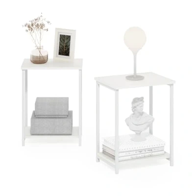 Furinno Simplistic Industrial Metal Frame Side Table, 2 Pack, White/White