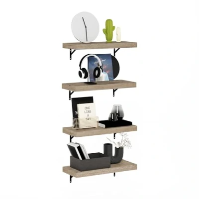 MODERN FLOATING SHELVES DESIGN: These floating shelves feature a clean wall-mounted profile that turns blank walls into useful display space in the bathroom, bedroom, living room, or home office, making the wall shelf both versatile and space-saving VERSATILE SETUP & STYLING: Use one wall shelf as a bedside ledge, or stack multiple floating shelves for a gallery wall, or stagger wall mounted shelves over a desk to organize notebooks and accessories, keeping surfaces clutter-free and the floating shelves easy to reach STURDY WALL-MOUNTED STORAGE: Each wall shelf uses extra thick 1.7Inch / 42mm durable particle board shelf boards with included brackets to hold toiletries, framed photos, small plants, speakers, and decor while keeping the floating shelves stable on drywall or studs. Each floating shelf holds weight capacity up to 15lbs / 6.8kg EASY INSTALLATION: The floating shelf set comes with step-by-step instructions, labeled parts, and mounting hardware for a straightforward setup on wood studs or wall anchors, so the wall shelves install cleanly and securely PRODUCT DIMENSION: 23.9 (D) x 56.9 (W) x 4.3 (H) cm