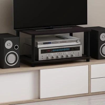 Furinno Turn N Tube 2 Tier Multipurpose Printer Stand Display & Storage Shelf, Dark Walnut