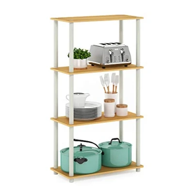 Furinno Turn N Tube 4 Tier Multipurpose Shelf Display Rack, Blonde Maple/White