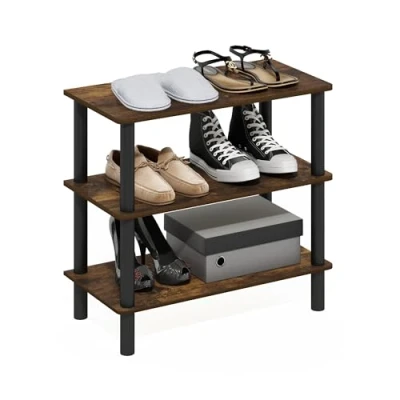 Furinno Turn N Tube 66cm 3 Tier Freestanding Shoe Rack Storage Organizer, Amber Pine/Black