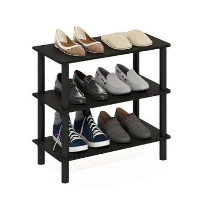 Furinno Turn N Tube 66cm 3 Tier Freestanding Shoe Rack Storage Organizer, Espresso/Black