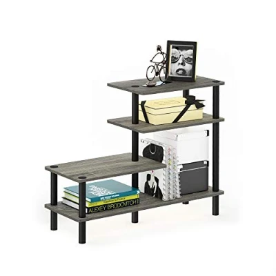 Furinno TURN N TUBE Storage Shelves, 4 Tier Ladder Book Shelf, Accent Display Toolless Open Round Tubes, for Organization and Storage, Living Room, Garage, Home Office, French Oak