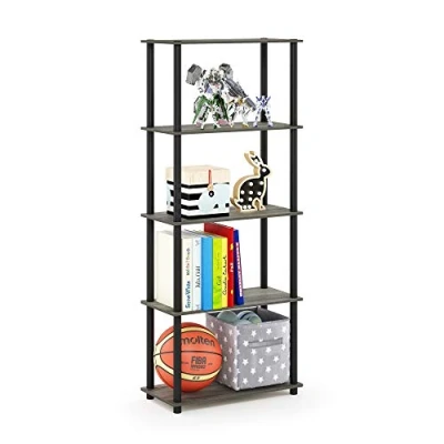 Furinno TURN N TUBE Storage Shelves, 5 Tier Book Shelf, Corner Toolless Open for Organization and Storage, Living Room, Garage, Home Office, French Oak
