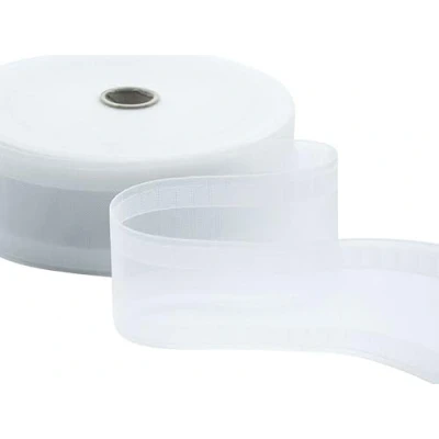 The Wave curtain tape is applied for a soft curtain with a contemporary design thanks to the wave effect With the Wave curtains we propose an exclusive system that transforms the traditional curtainto an extraordinary solution with an elegant and modern design The tape is packaged in rolls of 50 meters, easy to use because well resined and rigid It is available in the transparent version suitable for even the lightest curtains such as organza and is 75mm high All the Furlanis ribbons are designed and manufactured within the Cavaglià plant in Biella