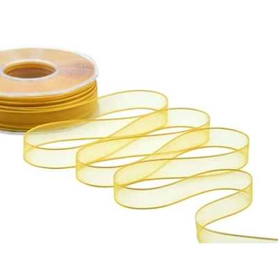 This ribbon is a thin ad transparent texture, with its reinforced and shiny edges it can be used to make elegant and well refined bows It is the ideal ribbon for wedding favors packaging, flowers and table decoration, and present wrapping Colour: Sun Yellow #1006 The roll contains 50 meters of organza veil ribbon 15 mm All the Furlanis ribbons are designed and manufactured within the Cavaglià plant in Biella