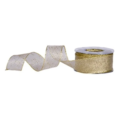 The veil tape is a rustic and transparent tape, woven with bouclé yarn which, while covering and hiding, lets you glimpse what is underneath Item N27 is made up of irregular threads with curls that protrude with a buttonhole effect, the veil ribbon thus takes on an irregular, simple, rough appearance and is characterized by small knots of variable size on the surface Colour: Gold #102 The roll contains 25 meters of Bouclé Veil Ribbon 40 mm All the Furlanis ribbons are designed and manufactured within the Cavaglià plant in Biella