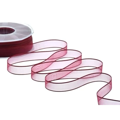 This ribbon is a thin ad transparent texture, with its reinforced and shiny edges it can be used to make elegant and well refined bows It is the ideal ribbon for wedding favors packaging, flowers and table decoration, and present wrapping Colour: Amaranth #46 The roll contains 50 meters of organza veil ribbon 15 mm All the Furlanis ribbons are designed and manufactured within the Cavaglià plant in Biella