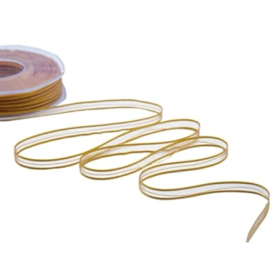 Organza ribbon for automatic bows with thread to be pulled in the center It is the ideal ribbon for wedding favors packaging, flowers and table decoration, and present wrapping Colour: Mustard #1085 The roll contains 50 meters of organza veil ribbon 6 mm All the Furlanis ribbons are designed and manufactured within the Cavaglià plant in Biella