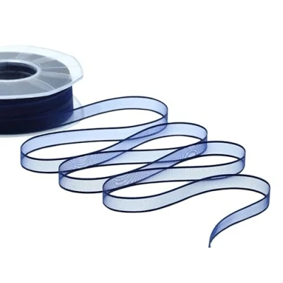 This ribbon is a thin ad transparent texture, with its reinforced and shiny edges it can be used to make elegant and well refined bows It is the ideal ribbon for wedding favors packaging, flowers and table decoration, and present wrapping Colour: Dark Blue #426 The roll contains 50 meters of organza veil ribbon 10 mm All the Furlanis ribbons are designed and manufactured within the Cavaglià plant in Biella