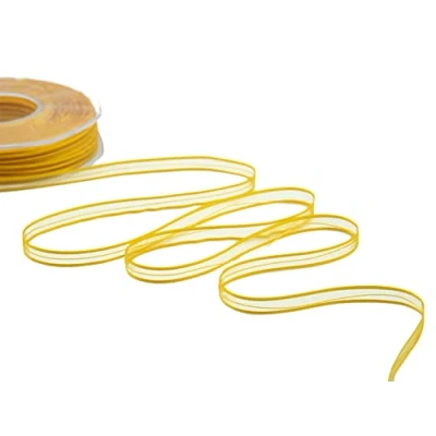Organza ribbon for automatic bows with thread to be pulled in the center It is the ideal ribbon for wedding favors packaging, flowers and table decoration, and present wrapping Colour: Sun Yellow #1006 The roll contains 50 meters of organza veil ribbon 6 mm All the Furlanis ribbons are designed and manufactured within the Cavaglià plant in Biella