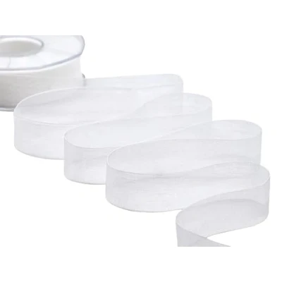 Sheer organza veil ribbon is transparent, it is perfect for wedding decoration and present wrappings It is woven with a shiny and transparent sheer organza fabric Colour: Optical White #13 The roll contains 50 meters of Sheer Organza Ribbon 25 mm All the Furlanis ribbons are designed and manufactured within the Cavaglià plant in Biella