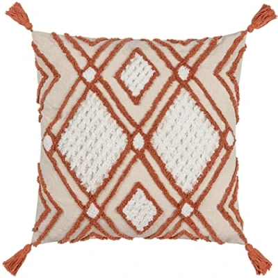 Featuring diamond tufted cotton patterns enclosed by contrast trending geometric lines. Complete with a cotton reverse, complimenting corner tassel trim and zip fastening. Made from 100% Cotton fabric. Machine Washable (30 degrees max), Low Tumble Dry and Do Not Iron.