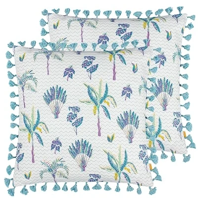furn. Chamae Floral Tasselled Feather Filled Cushion Twin Pack, Lilac, 50 x 50cm