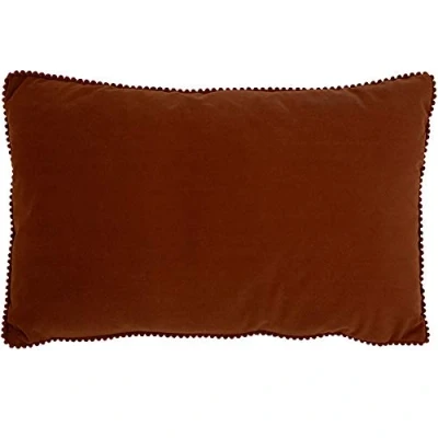 Featuring a plain matching reverse design on velevt feel fabric Complete with a mini pom-pom trim and hidden zip closure Made of 100% Polyester, making this cushion super soft and snuggly as well as shrink resistant Dry Clean as Instructed only Insert not included. Cushion cover will fit size 30 x 50cm inserts, or try slightly smaller for extra plumpness