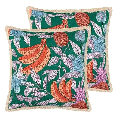 furn. Cypressa Floral Mosaic Feather Filled Cushion Twin Pack, Teal, 50 x 50cm