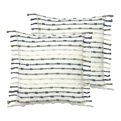 Featuring a chunky woven tuft sripe and dotted design. Complete with a plain reverse, side tassel edging and hidden zip closure. Made of 60% Cotton 40% Polyester, making these cushions super soft and snuggly as well as durable. Machine Washable at 30 Degrees and Line Dry Only. Inserts Included.