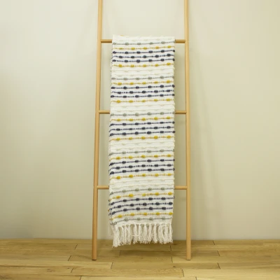 Add texture and warmth to your home, with the chunky Dhadit throw, featuring contrast woven lines in recycled PET yarn and finished with fringed edges.