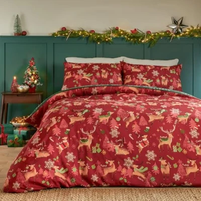 ULTRA SOFT TOUCH FABRIC: Enjoy a luxuriously cosy sleep with irresistibly soft bedding perfect for chilly winter nights. REVERSIBLE FESTIVE DESIGN: Switch between Santa’s iconic reindeer and their charming names for a playful Christmas twist. FESTIVE MAGIC FOR YOUR BEDROOM: Bring joyful Christmas spirit into your space with a charming and playful seasonal design. PRACTICAL AND COSY: Designed for real homes, this bedding offers everyday comfort without compromising on festive fun. EASY TO CARE FOR: Machine washable for effortless cleaning, perfect for keeping your bedroom fresh and inviting.