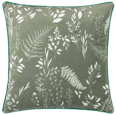 furn. Fearne Piped Printed Velvet Feather Filled Cushion Green One Size