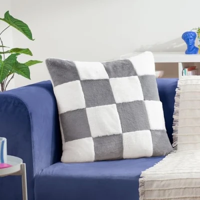 LUXE & LOVABLE: Soft, snuggly, and full of style – this faux fur cushion is the ultimate statement of comfort and confidence. FEATHER-FILLED INDULGENCE: Filled with natural feathers for a plush, weighty feel that adds a touch of everyday luxury. TREND-LED TEXTURE: Oversized checkerboard faux fur design gives your space that cosy, modern edge. PERFECTLY FINISHED: Designed with a faux fur reverse, knife-edge trim, and hidden zip for a sleek, seamless look. EASY TO CARE FOR: Includes removable feather-filled pad. Dry clean only; no ironing required.