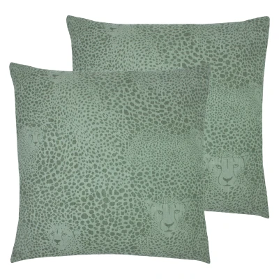 furn. Hidden Cheetah Cushions (Twin Pack) Green Cotton Size 50 cm x
