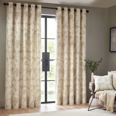 furn. Hoem Brinn Abstract 100% Cotton Lined Curtains Natural (229cm Width x 183cm Drop)
