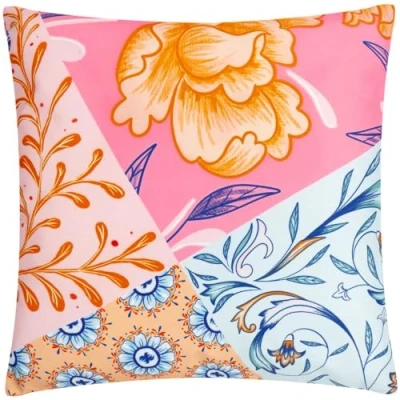 Featuring a Mediterranean tile-inspired design of eclectic floral patterns in a range of trending summer colours. Complete with a global floral pattern on the reverse, standard knife edging, and hidden zip fastening. Made of UV- and water-resistant polyester fabric, this outdoor cushion is designed to withstand sunshine, showers, and spills. Designed, printed and made in the UK. Spot Clean, Flat Dry and Do Not Iron Only.