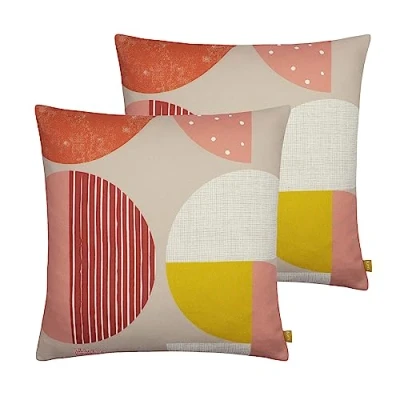 Featuring a Scandi inspired abstract circular printed design. Complete with a coordinating repetitive reverse and hidden zip closure Cushion covers made using super sustainable 100% Recycled Polyester (PET). Machine Washable, Line Dry and Do Not Iron. Certified Recycled Polyester by 'REPREVE'.