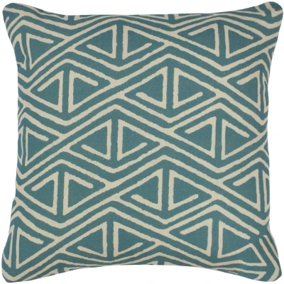 furn. Nomi Geometric Monoprint Feather Filled Cushion Blue One Size