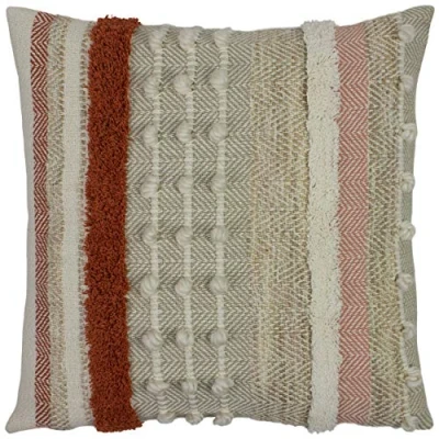 Featuring a woven design inspired by Global and Aztec styling design with PET recyclable yarn looped and knotted stitching. Complete with a plain natural reverse and hidden zip closure. Made of 92% Cotton 5% Acrylic 3% Polyester, this cushion is durable and super comfy. Dry Clean Only. Insert included.