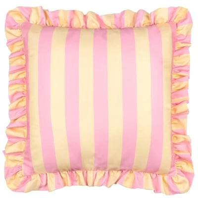 furn. Palm Royale Stripe Cushion Cover Water Resistant Bold Striped Ruffle Trim Outdoor Decorative Case (Pink/Yellow 50x50cm)