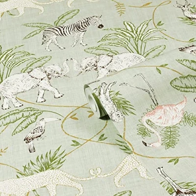 furn. Serengeti Animal Printed Wallpaper Green One Size
