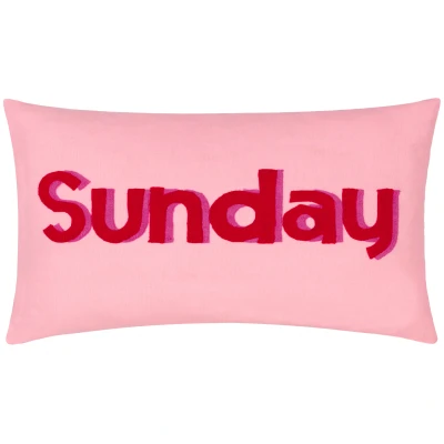 Celebrate the best day of the week by lounging on this cushion that spells out the word “Sunday.” Featuring cleverly embroidered 3D lettering and surrounded by a fresh pink background, this piece helps you to instantly relax and is a casual addition to any modern sofa.