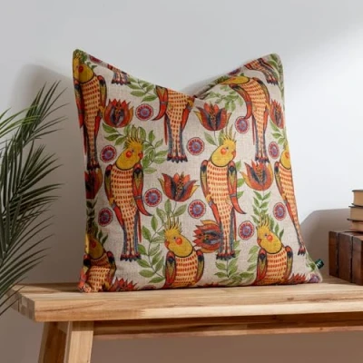 Featuring a hand-painted, symmetrical printed design of characterful cockatiels perched among vivid abstract florals. Complete with a plain linen-look reverse, oxford border and hidden zip fastening. Made with 100% Polyester fabric, this cushion is super soft yet durable. Designed, printed and made in the UK. Machine Washable (40 degrees max), Line Dry and Cool Iron Only.