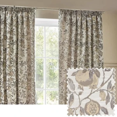 Secret SalesInspired by nature, the Pomegranate pencil pleat curtains feature a timeless, classic floral design. Woven on a jacquard base in a range of natural hues, this elegant design will bring a breath of fresh air to your home.