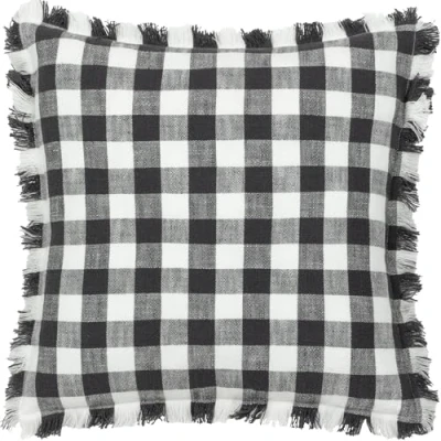 furn. Yard Barton Check Fringed Feather Filled Cushion Oversized Gingham Cotton Reversible Design (Black 45 x 45cm)