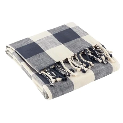 CLASSIC CHECKED STYLE: Featuring a timeless check design in muted tones, bringing relaxed charm and subtle pattern to any space. SOFT 100% COTTON: Made from breathable, natural cotton that feels wonderfully soft and comforting for everyday use. DURABLE AND DEPENDABLE: Crafted with high-quality cotton designed to withstand regular use indoors, outdoors or on the go. VERSATILE LAYERING PIECE: Perfect as a cosy sofa throw, outdoor blanket, picnic layer or even a relaxed dining table accent. TASSELED FINISH: Completed with a charming tasselled trim along two edges, adding an easy, decorative touch to your calm home aesthetic.