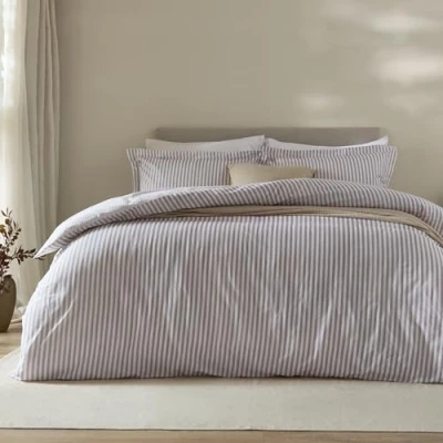 furn. Yard Hebden Mélange Stripe Cotton Duvet Set Ultra Soft Reversible Striped Bedding (Mauve Super King)