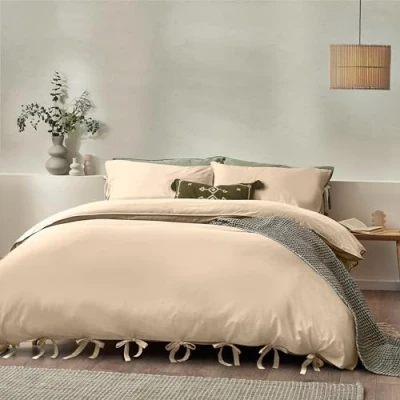 furn. Yard Mallow Bow Tie 100% Cotton Duvet Cover Set Single Linen