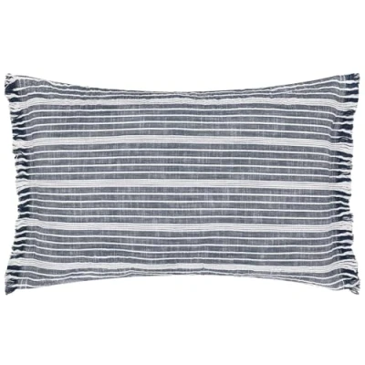 furn. Yard Tide Cotton Outdoor Cushion Cover Textured Striped Garden with Ruffle Trim (Navy Only, 60 x 40 cm)