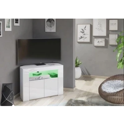 Furneo Corner TV Stand Unit Cabinet Matt & High Gloss Clifton07 RGB (multicoloured) LED Lights