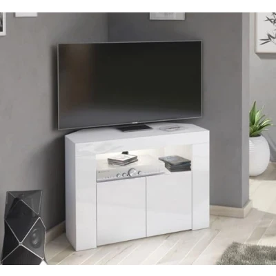 Furneo Corner TV Stand Unit Cabinet Matt & High Gloss Clifton07 White LED Lights