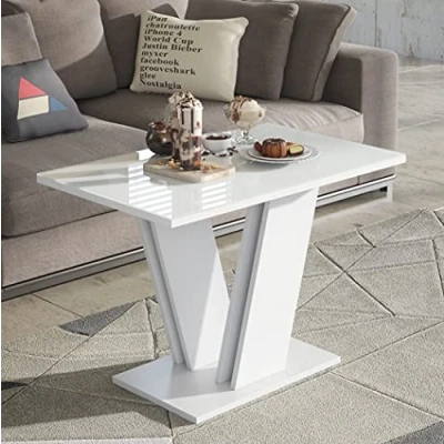 Furneo Glass Coffee Side Table White Modern Living Room Furniture