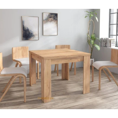 General description This dining table features an oak effect finish and is extendable via a folding design. It can be extended from 90cm to 180cm, making it suitable for areas with limited space or for accommodating extra guests. When fully extended, it can seat up to 8 persons. Please note that chairs are NOT included. Technical specifications Dimensions (LxWxH): 90-180cm x 90cm x 77cm Flatpack item requiring assembly Supplied in two parcels Installation Picture instructions and a written notice are included with the item Instructions should be reviewed carefully before attempting assembly