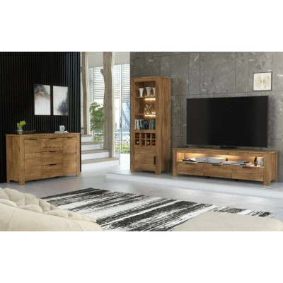 Furneo Oak Dark Effect Living Room Set TV Stand Display Cabinet Sideboard LED Lights Prestigio 2 4 6 (Full 3 Pieces)