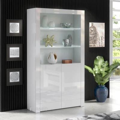 Furneo White Display Cabinet Modern High Gloss &Matt 2 Door Cupboard Blue LED Lights Clifton20