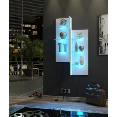 Furneo White Floating Display Cabinet Wall Unit Shelf High Gloss & Matt Clifton09 Blue LED Lights