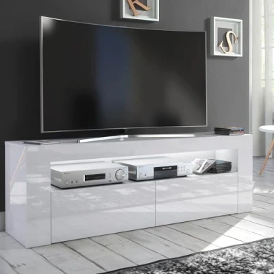 AmazonFront panels and doors in high gloss white, body (top, sides and inside) in matt white TV Stand with two cupboards and upper open display area Unit dimensions (WxHxD): 145x48x40cm White LED lights included (2 LED strips + UK Power adapter) Supplied flatpacked, self-assembly required, picture instructions included