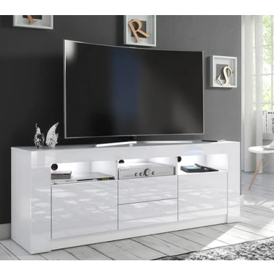 AmazonFront panels and doors in high gloss white, body (top, sides and inside) in matt white TV Unit includes two cupboards, two drawers and three upper open spaces ideal for your media Unit dimensions (WxHxD): 160x60x40cm, Suitable for TV's up to 70in. White LED lights included (3 LED strips + UK Power adapter) Supplied flatpacked, self-assembly required, picture instructions included